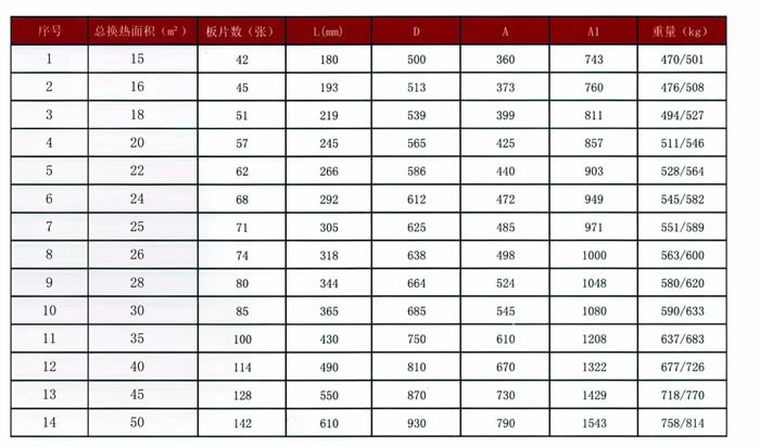 單片換熱面積:0.35㎡